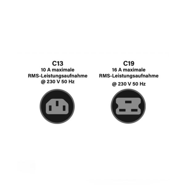 • Anschluss B: C13 (3-polig), C19 (3-polig)