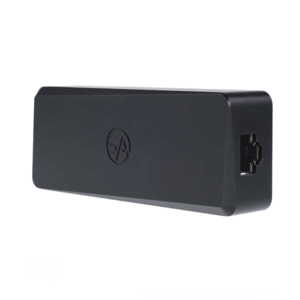 Der Stack Audio SmoothLAN misst etwa 10 x 4 x 2 Zentimeter und wiegt 200 Gramm. Dieses verhältnismäßig hohe Gewicht resultiert aus dem soliden Aluminiumgehäuse, das nicht nur vor Vibrationen, sondern vor allem vor Einstreuungen in die Elektronik schützt, so Theo Stack, Entwickler und Eigentümer von Stack Audio.